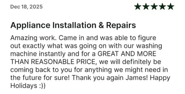 Washer, dryer, dishwasher installs and basic troubleshooting