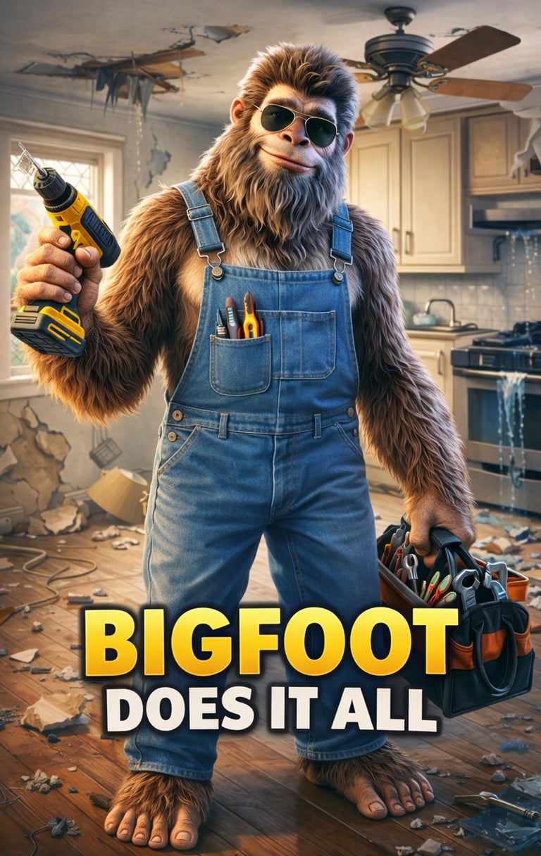 Bigfoot does odd jobs, cleanups, installs, and more around town.